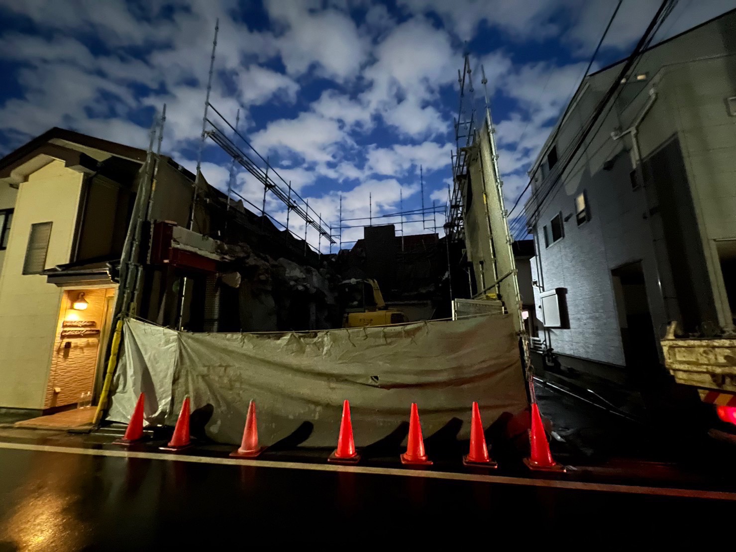 不動産買取 現地進捗状況【東京都練馬区春日町】 2022.11.04 弊社売主物件の練馬区春日町の解体最新状況です。 外壁のアスベスト剥離、鉄筋コンクリート造の解体作業がほぼ終わり、足場を外しているところです。 これから地下の解体作業に入ります。 想像以上に大変です・・・。