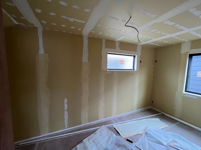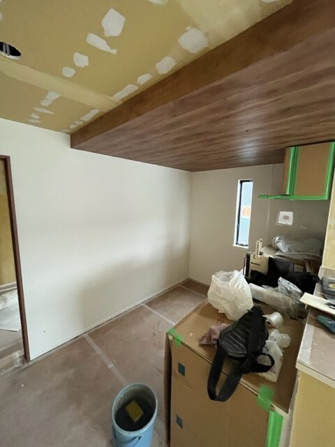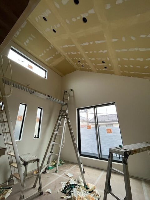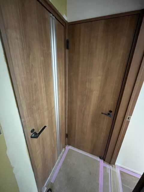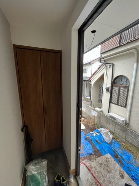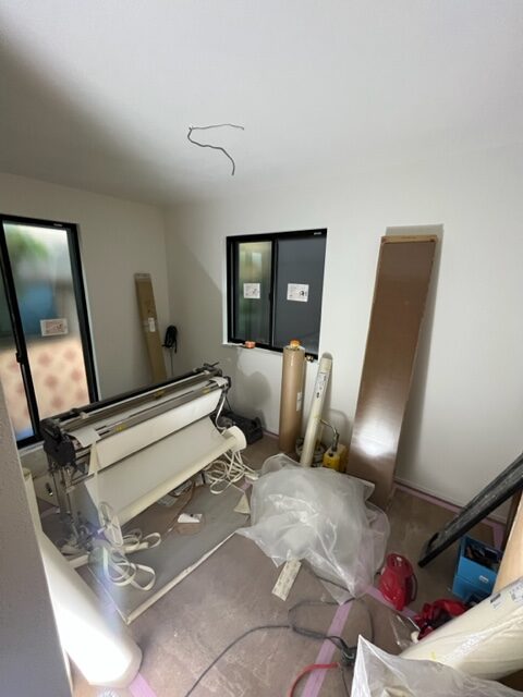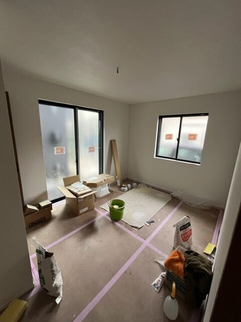 内装も建具が設置され、これからクロス貼り作業に入ります。