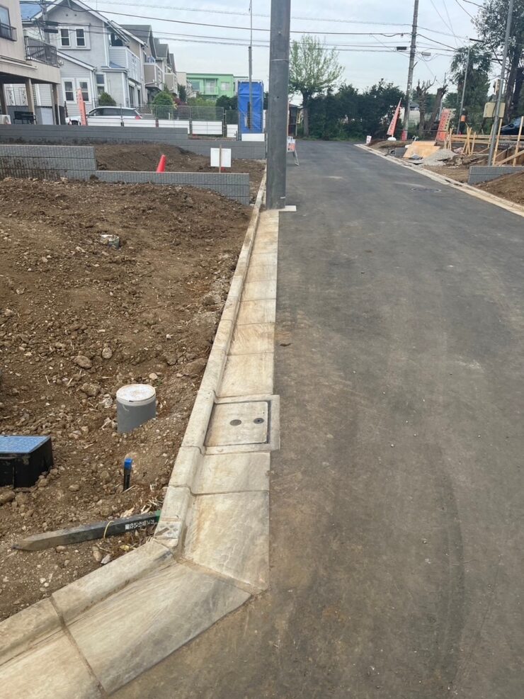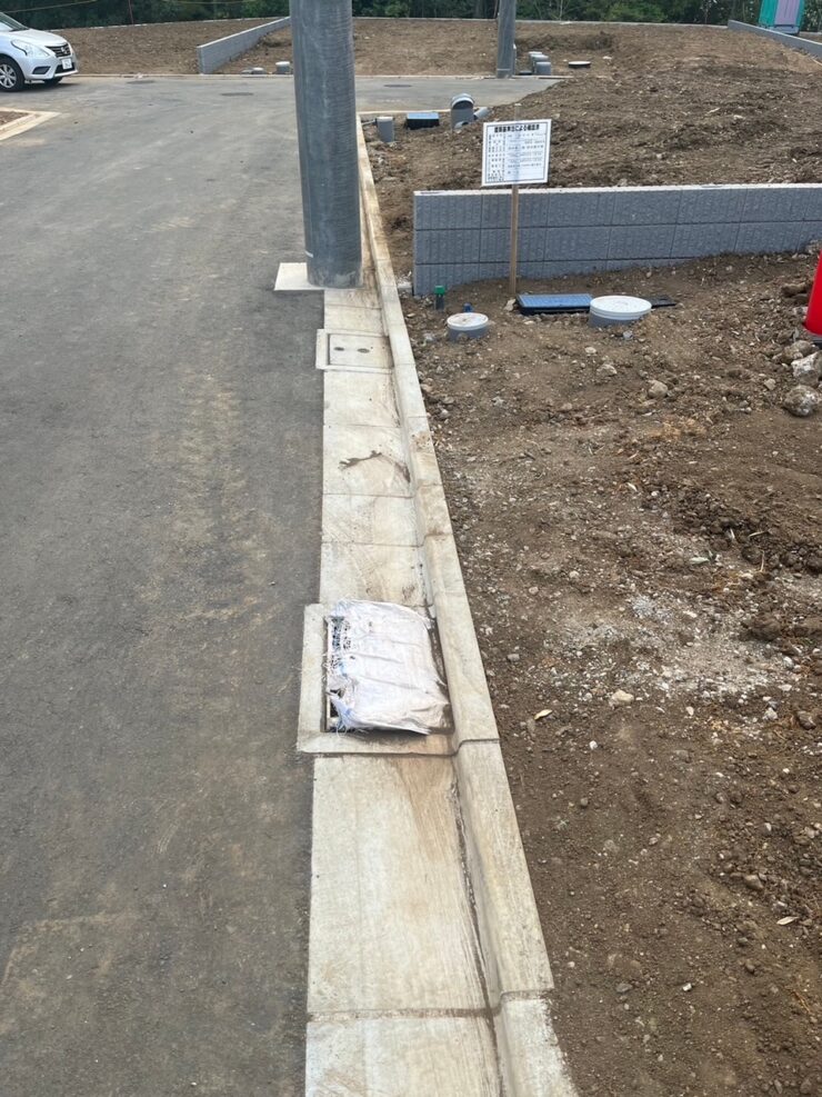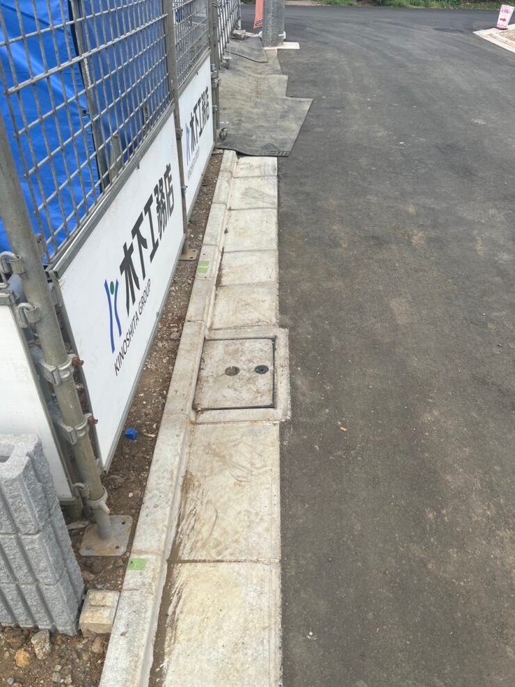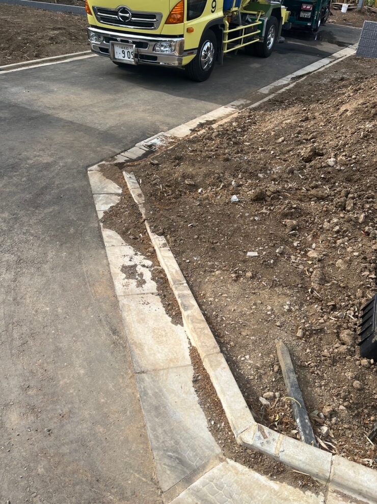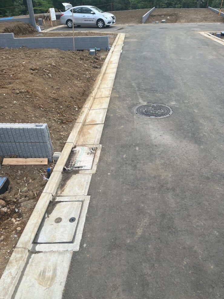 まだ更地の箇所も多く、敷地内の土砂が道路側に流れてしまっていた為、昨日清掃を行いました。