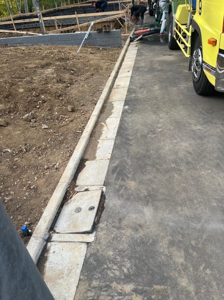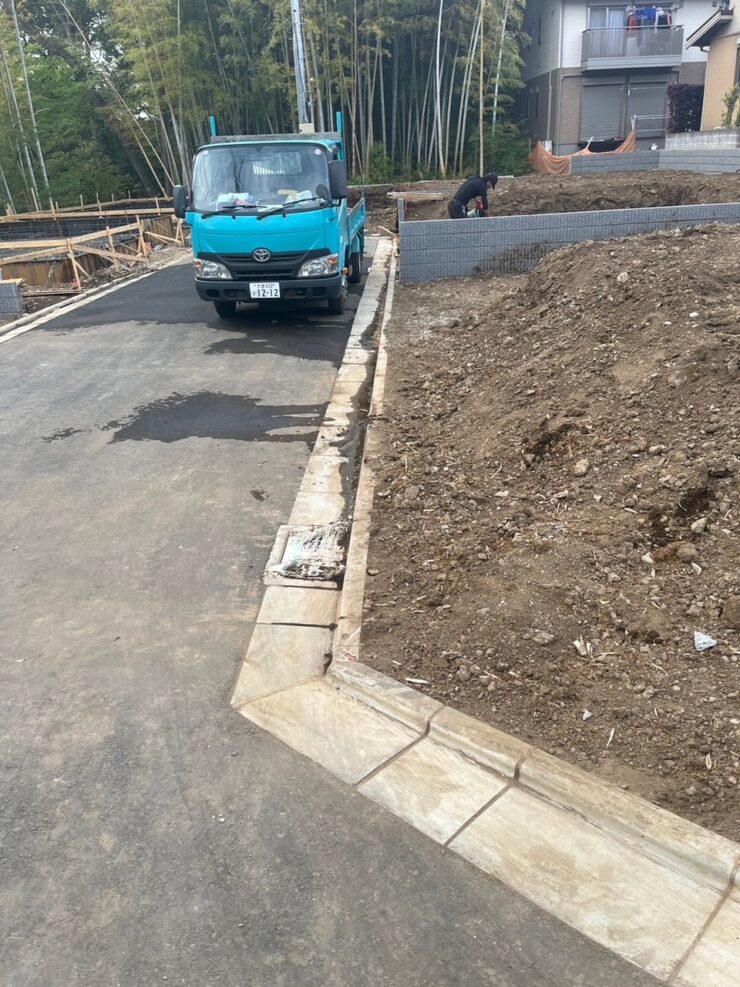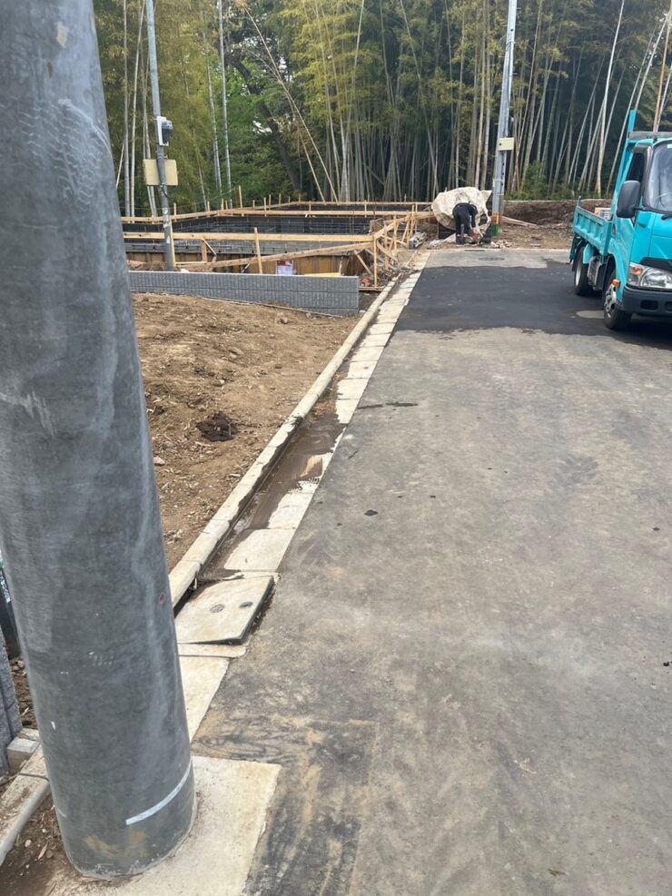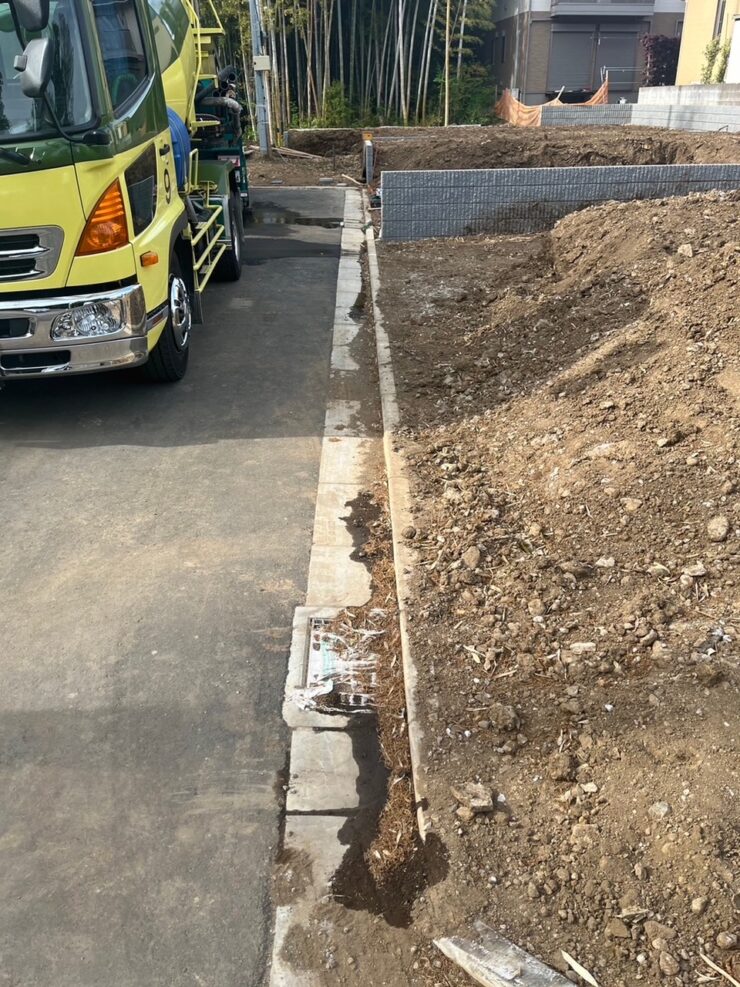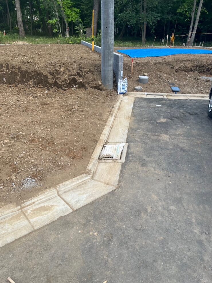 まだ更地の箇所も多く、敷地内の土砂が道路側に流れてしまっていた為、昨日清掃を行いました。