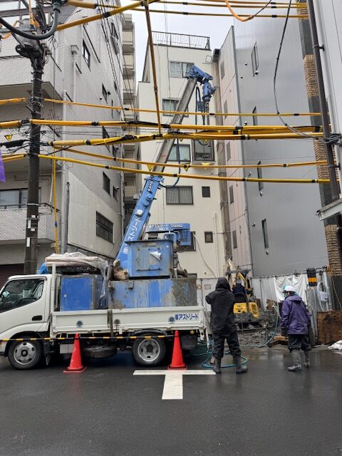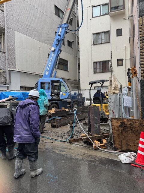 不動産買取 山留工事中です【文京区湯島3丁目】 2026.04.02 弊社で所有する文京区湯島3丁目の定例会議があり、帰り際に立ち寄りました。 現場は杭打ち工事が終わり、山留工事に入っております。 近隣の皆様には騒音、振動、車両の出入り等で大変ご迷惑をおかけし、申し訳ございません。 弊社では、東京都・埼玉県を中心に、他社が取り組みできないような25㎡~の狭小地、変形地を中心に、不動産を買い取りしております。 残置物はそのままで売却したい、測量を行わずに早期に売却したい、などのニーズにも対応可能です。 また、空室が長期化して収益が悪化している、今の管理会社がきちんと募集してくれない、建物が老朽化しているが修繕費が高過ぎて困っている、など、賃貸経営でお困りのアパートオーナー様も、調布駅前のウィズ・コネクションにお任せください。